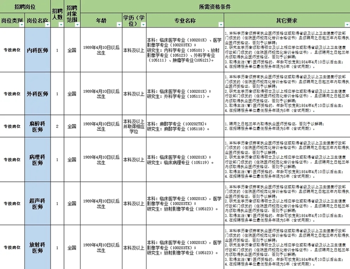 【人才招聘】2025年沐川县赴高校考核招聘医疗卫生专业技术人员的公告来啦!发表时间:2025-04-07 10:52 沐川县拟于2025年4月10日赴川北医学院高坪校区考核招聘医疗卫生专业技术人员7名,有关事项如下: 报名方式 本次报名采取现场报名的方式进行。 报名时间 2025年4月10日(星期四)上午09:00—11:30。 报名地点 川北医学院高坪校区风雨操场(四川省南充市高坪区东顺路55号)。 招聘岗位及要求