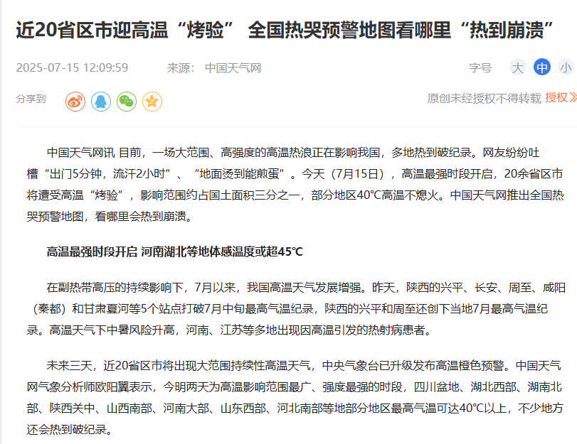 近期,全国多地出现高温酷暑,部分地区气温突破历史极值。
